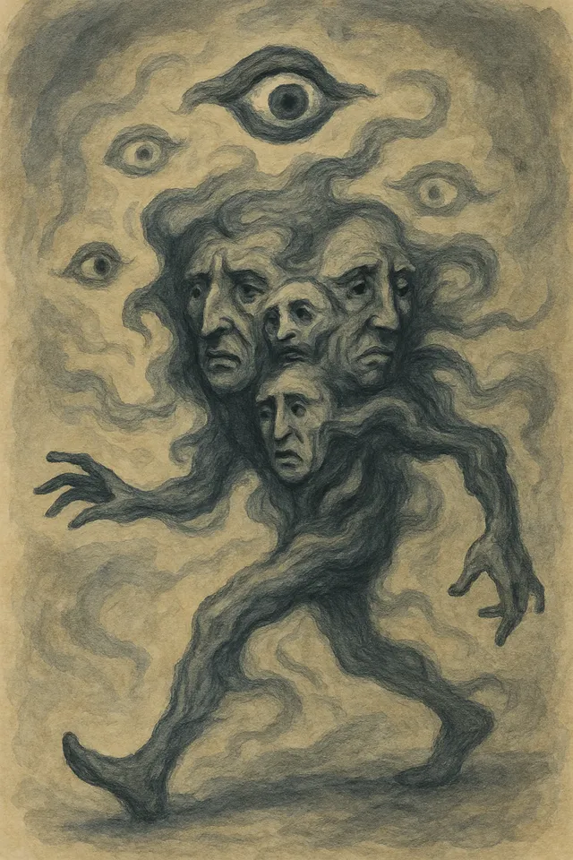 イメージ的には、顔が複数あったり、目が宙に浮いてたり、手足が煙のように変形してるとか?