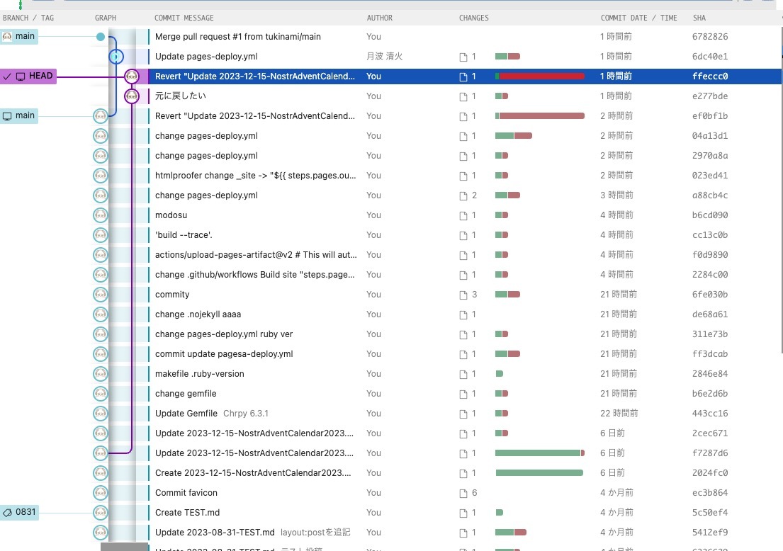リモート(GitHub上のもの)の記事が元に戻りましたよー!