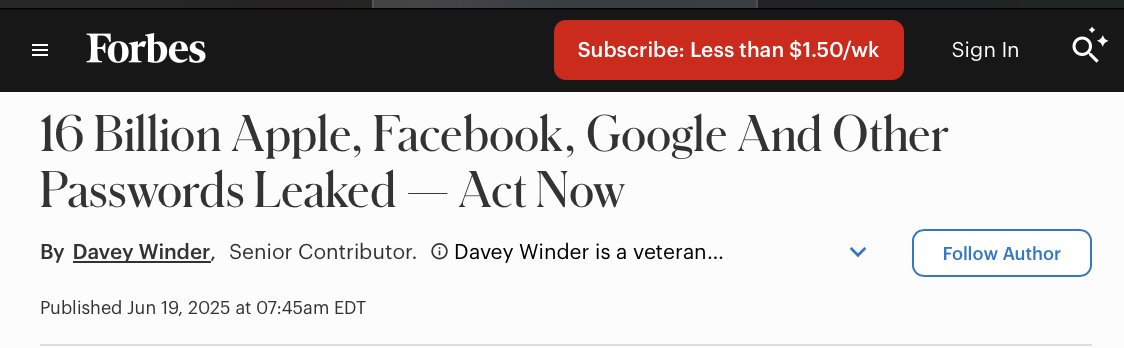 16 billion Apple, Google, and Facebook credentials have been leaked.
