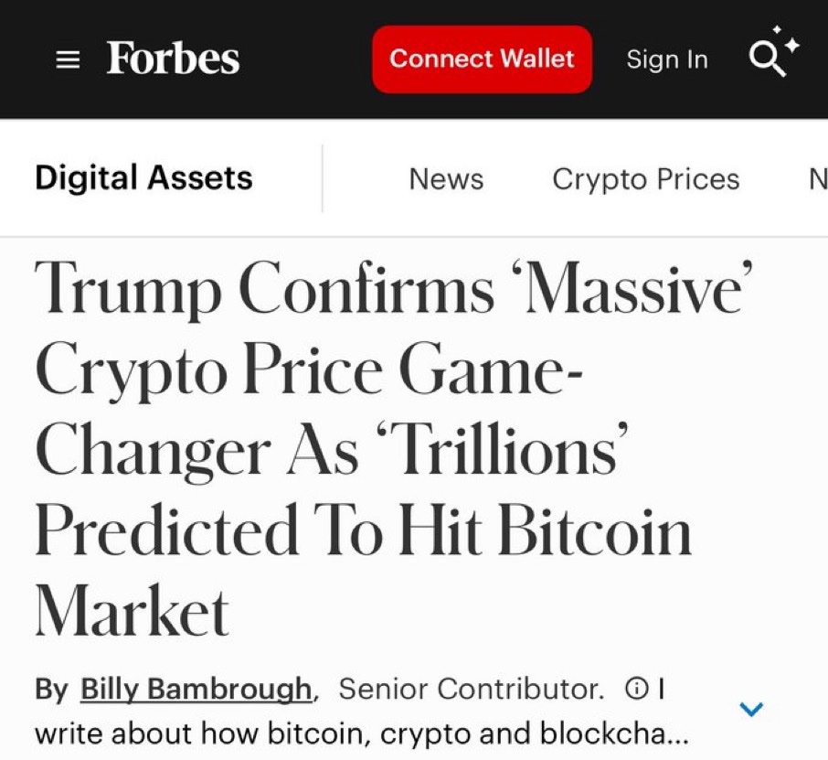 Trump signals a “massive” crypto shift as Forbes reports “trillions” could flow into #Bitcoin.