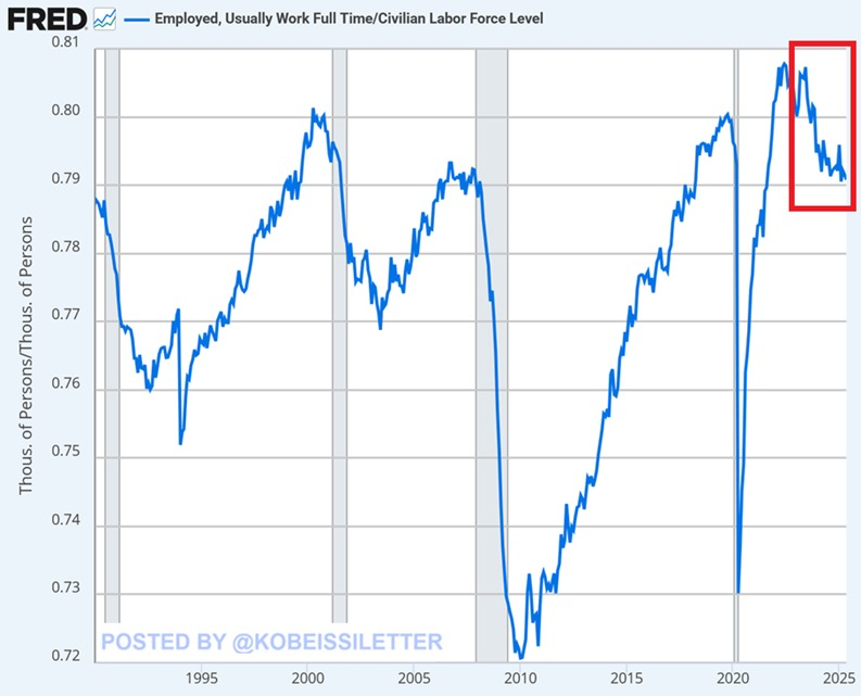 Full-time jobs in the US dropped by 623,000 in May, the 4th worst decline in 5 years.