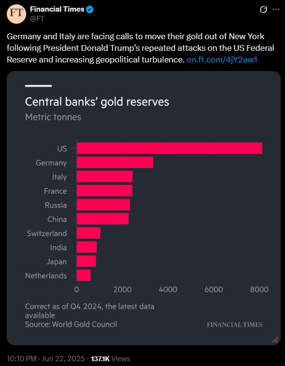 Reuters: Central banks managing trillions are shifting out of the dollar.