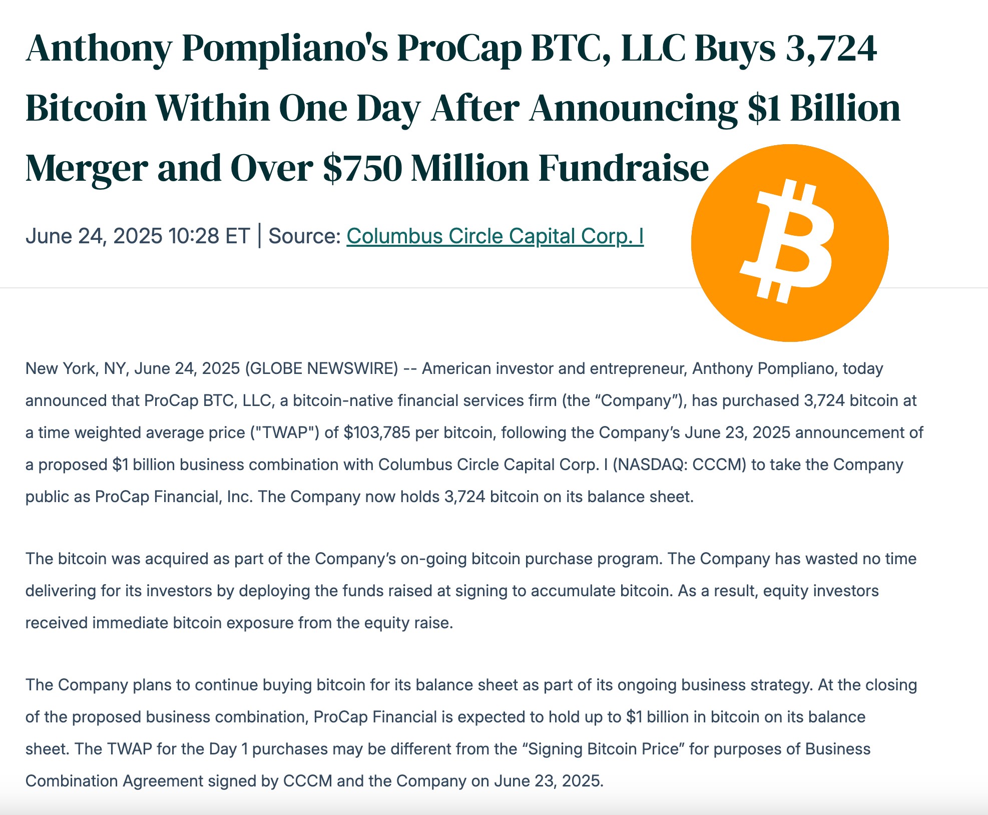 Anthony Pompliano's ProCap BTC buys 3,724 #bitcoin.