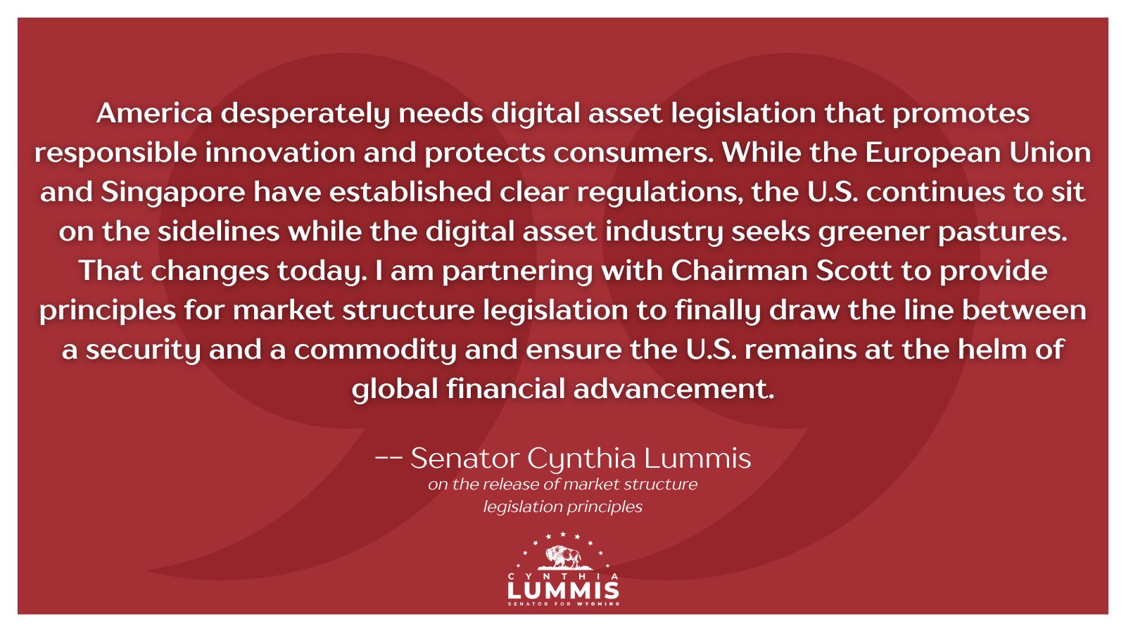 Sen. Cynthia Lummis: Congress is crafting "clear & innovative digital asset market structure legislation."
