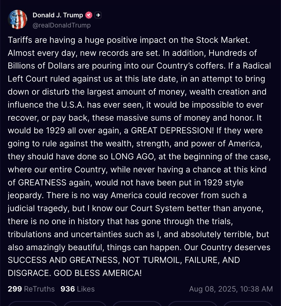 Warns that a radical court ruling could trigger a 1929-style Great Depression.