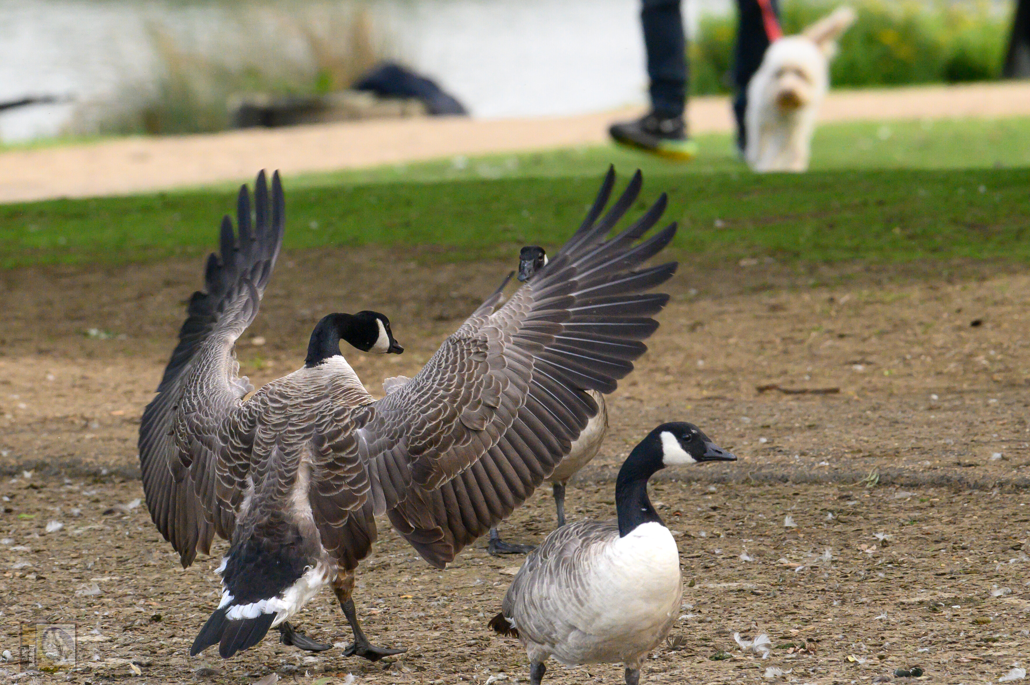 nostr:npub139mtqs0xq559r6hnym4f5nawdk9w8n86sj0cvc9qpzst7na6fjuswg6cf9 Who would win, two geese or a dog? My bet‘s on the geese.