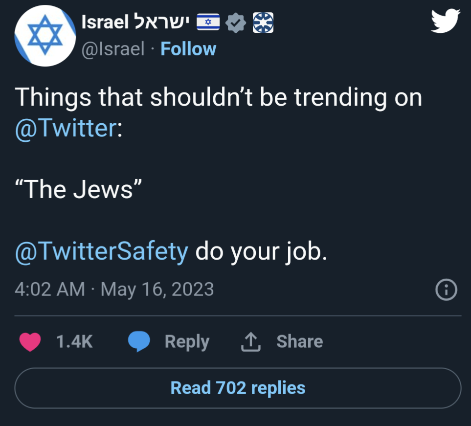 They're literally "Shut it down, the goyim know" posting on the official Israel Twitter account.