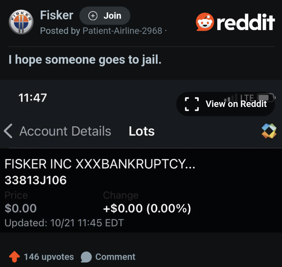 An EV manufacturer that grifted so hard it rose from the dead through the power of bankruptcy court necromancy to scam bagholders for a second time before dying again.