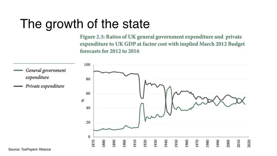 The growing proportion of the state is an expression of the all initiative suffocating bureaucratization of the broader parts of society. They are the vampiric sector of society, the front organizations of the political class that must keep towering figures from the competing private sector like Elon Musk in check in the media to avoid losing credibility even faster. As we are now entering an accelerated phase of state failure, the good news at the end: 20th century history teaches us that this form of social organization usually collapses faster than its innovators can build it. So let's remain hopeful and put our faith 100% in freedom and reason!