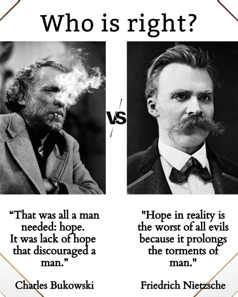 On this issue, I am clearly on Friedrich's side. Hope puts us in chains only too easily and too willingly. Be optimistic, realistic. Know Your limits but keep a strong fighting spirit to enrich life.