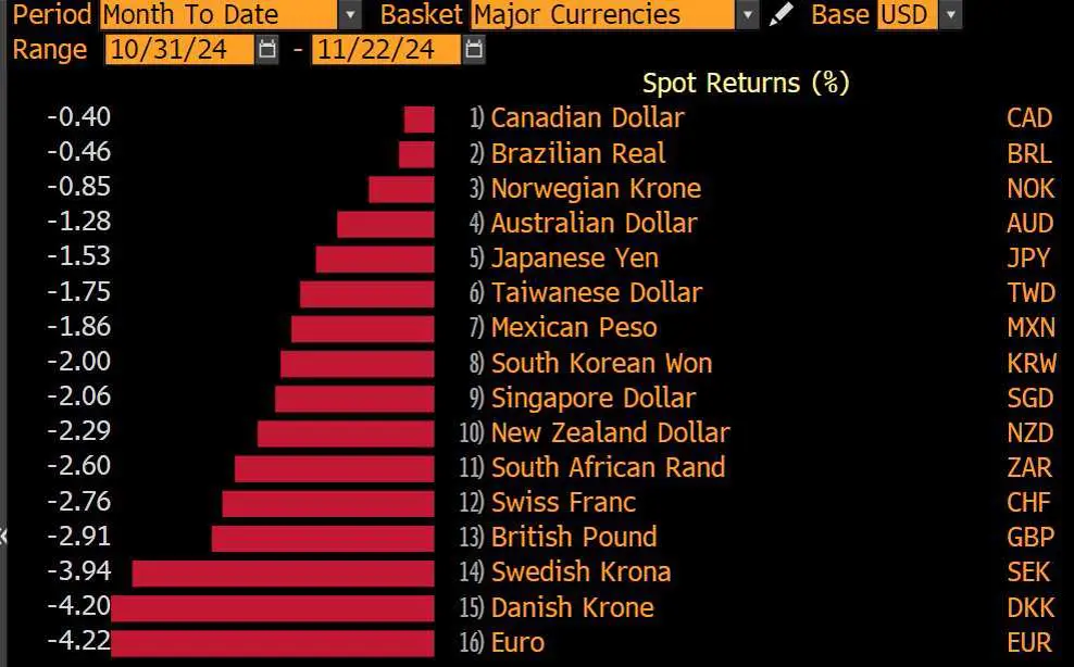 The rate of headline inflation in the eurozone rose by 2.3% year-on-year in November. This means that it has once again fallen well short of the inflation target set by the European Communist Bank, the ECB. We expect a new 25 basis point cut in the key interest rate in December, i.e. into the inflation reaction phase. Now we can wait and see what happens when the energy-poor economic area is hit hard by a repricing of the energy markets. The Europeans are trapped!