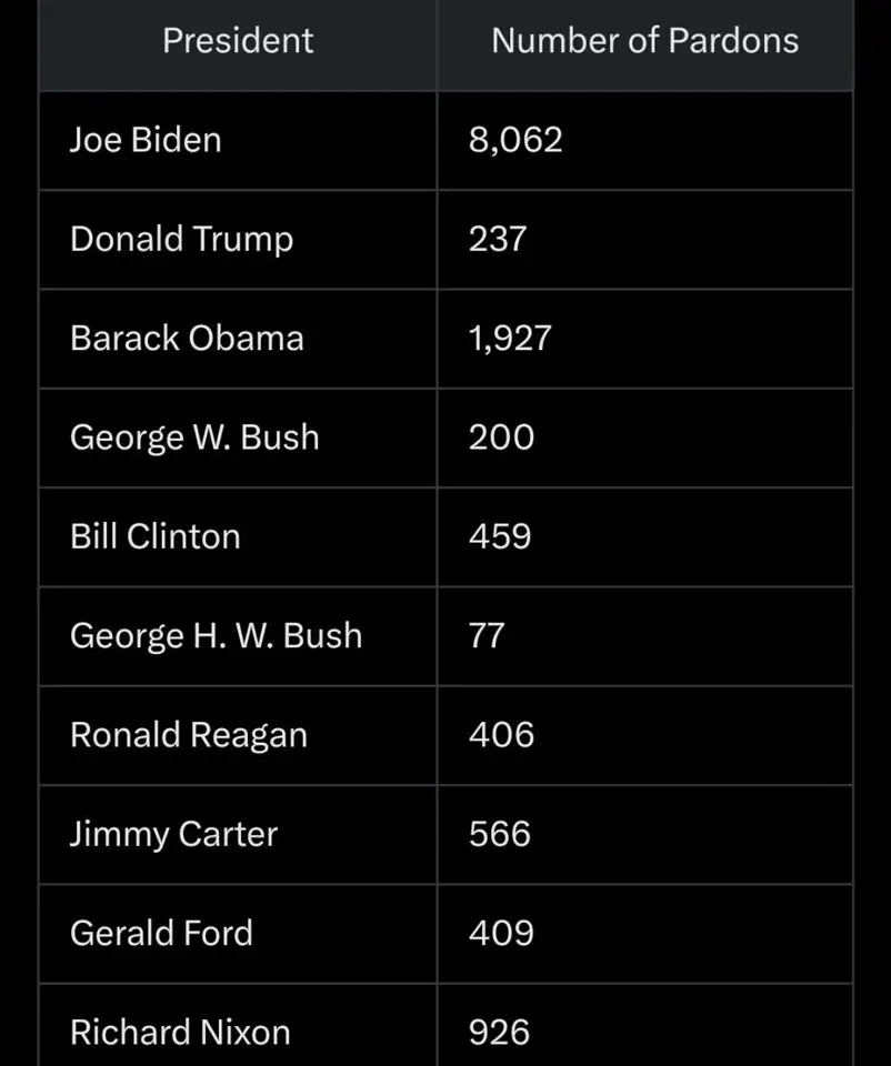 In a true transparent democratic society, the excessive number of pardons by the White House should be an absolute hot topic. Nothing is being criticized, the radical left and their disgusting whore press are silent on this undermining of the trustworthiness of the legal system. The senile old man signs what the machine puts on the table. #usa #biden