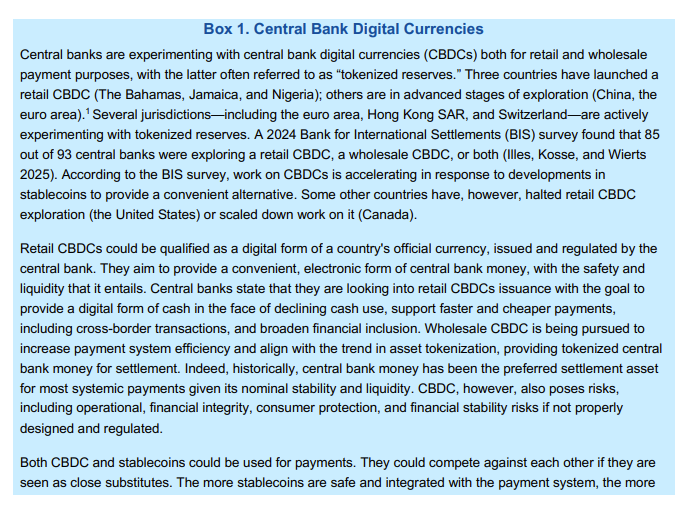 The IMF openly admits nearly every major central bank is building a CBDC, and they see stablecoins as a direct competitor.