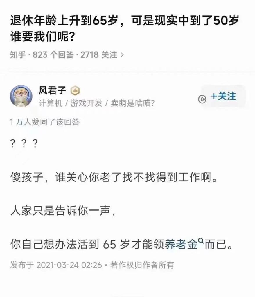 🔥 知乎问答:“退休年龄上升到65岁,可是现实中到了50岁谁要我们呢?”