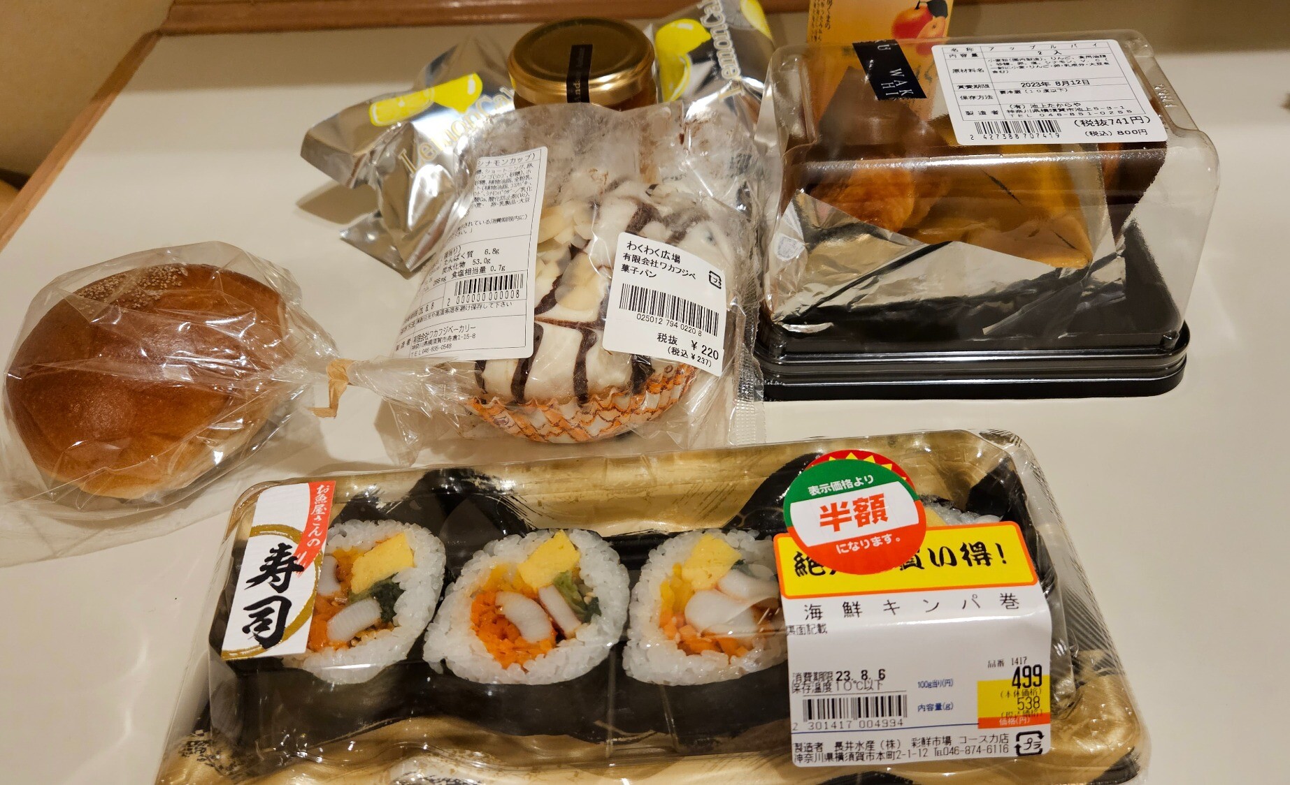 (写真に写っているものは当然今日全部食べるわけではなく、明日以降家や会社で食べるつもりのものも含まれている)