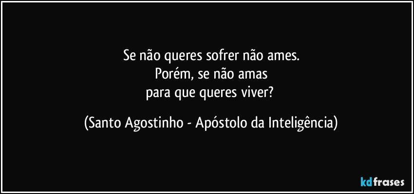 Santo agostinho diz-nos palavras muito importante sobre o sofrimento e o amor, os dois estão intimamente ligados e negar-se a amar é negar ter apreço pela própria vida.