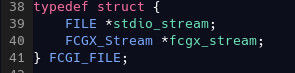 I suspect you need just need to cast to a pointer to FCGI_FILE like so; (FCGI_FILE *)cfg