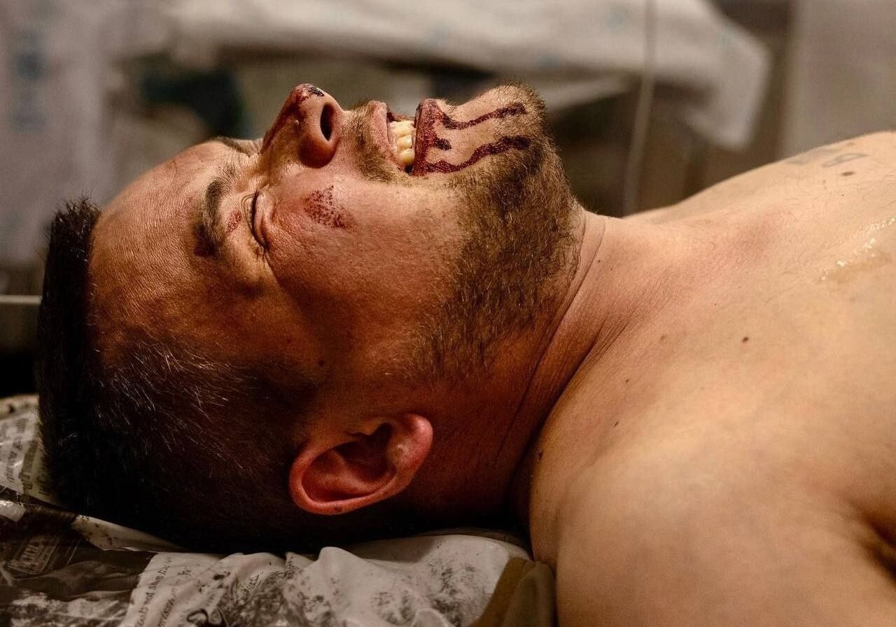 A wounded Ukrainian Defender is getting treatment near the frontlines in Donetsk region.
