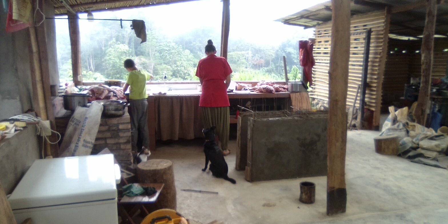One of the next steps in our ongoing addition project is the construction of some bambu curtains to be able to close in our open-air kitchen. This guadua was planted by Michael as soon as he arrived on the property and seven years later we're able to harvest and put it to use. But first, it has to be split.