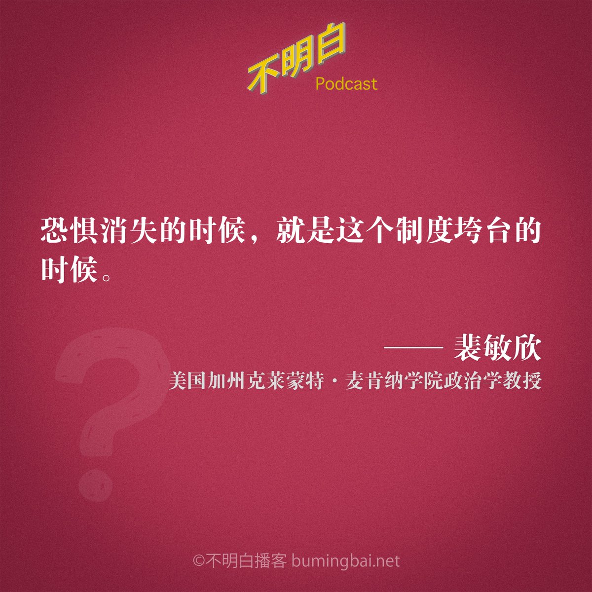 选自《不明白播客》EP-091 裴敏欣:被监视的人民——监视与中共独裁的延续