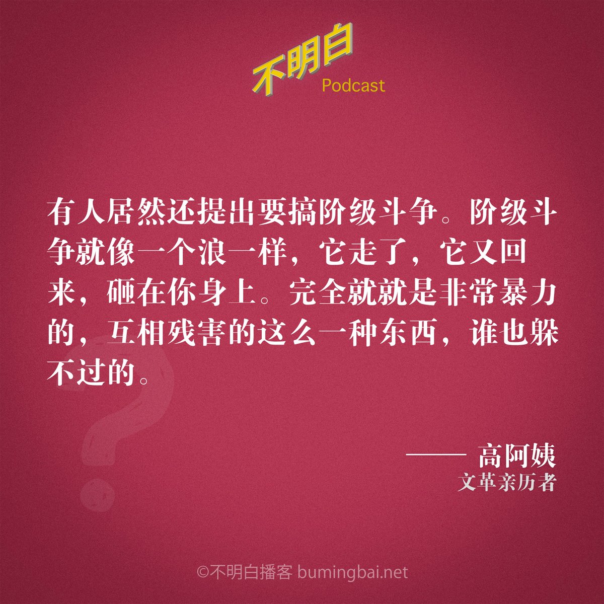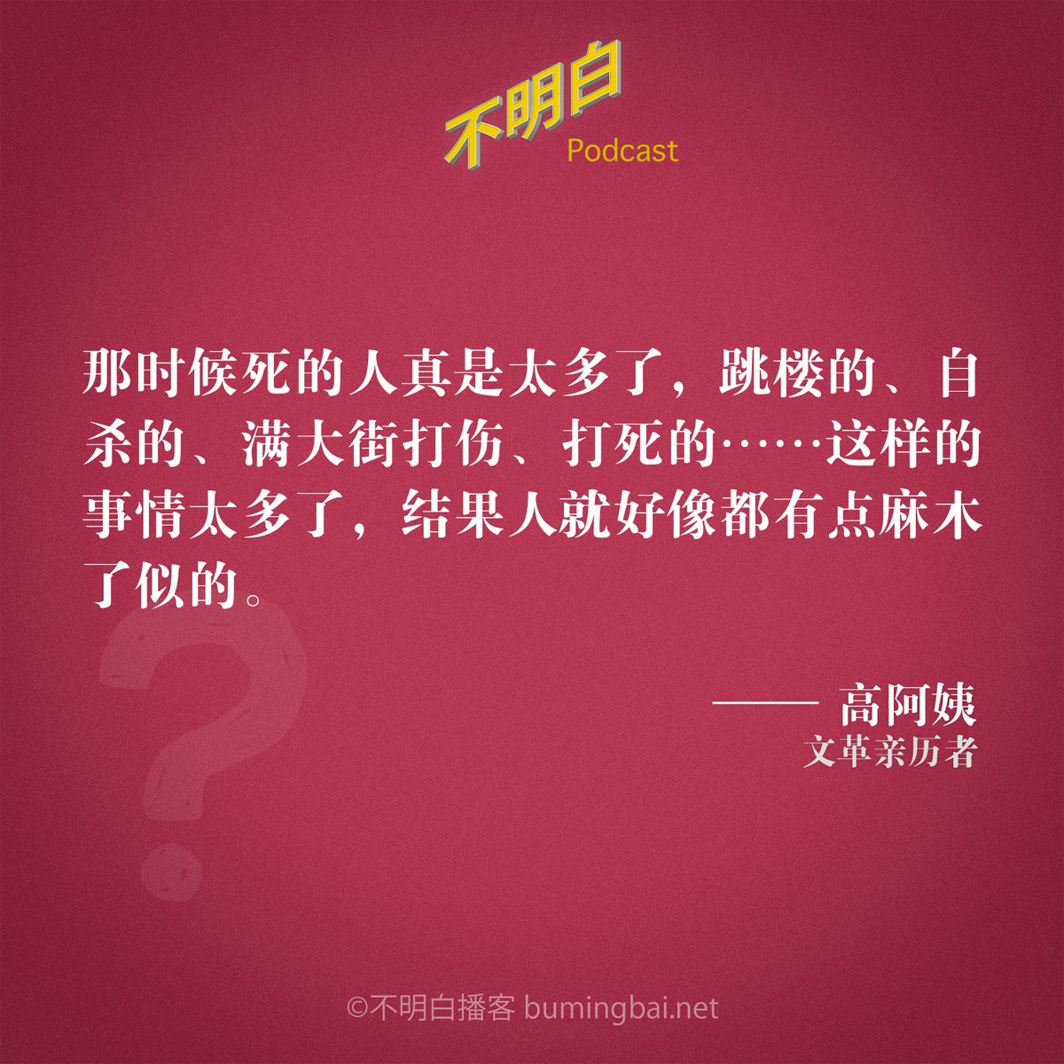 选自《#不明白播客 》EP-093 高阿姨:我目睹了奈飞版《#三体 》中的文革暴力