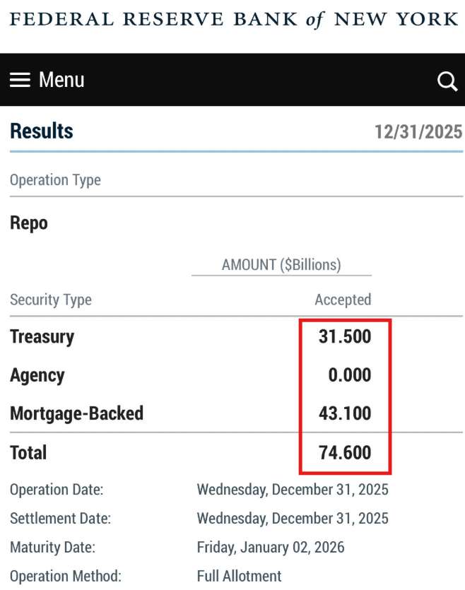 Yes, we know today is 12/31 and it's year end, but needing $74.6 BILLION in emergency overnight liquidity from The Fed's Repo Window is NOT NORMAL.