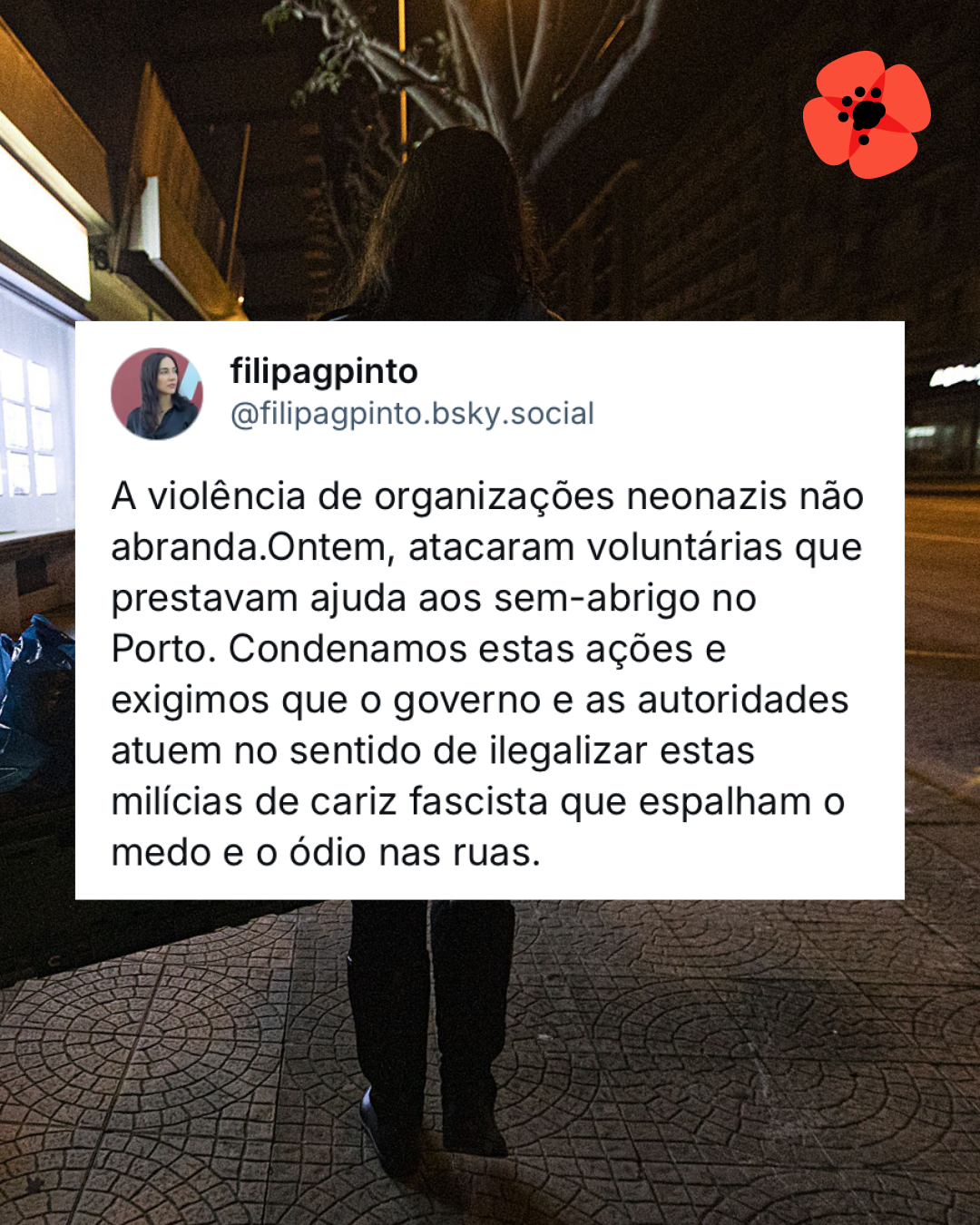 Ajudar quem mais precisa nunca pode ser motivo de agressão. O LIVRE condena a violência deste grupo de extrema-direita contra voluntárias no Porto e exige uma resposta clara do Governo.
