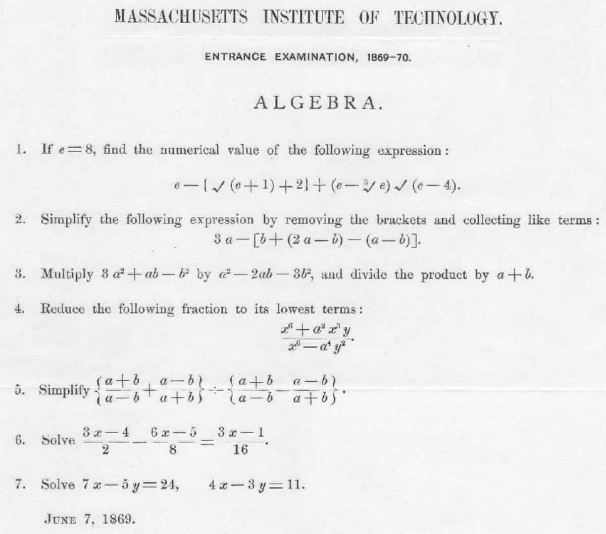 1869-1870年麻省理工學院入學考試题目 https://t.co/Zk9ff2hNUy