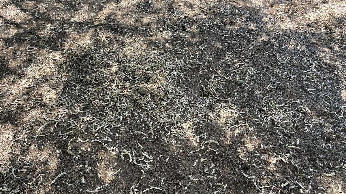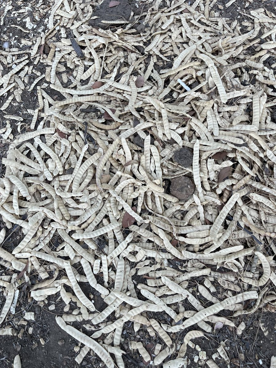 这个树Mesquite,会掉下黄色长豆,里面还有一层比较硬,剥掉以后是棕色的小种子。