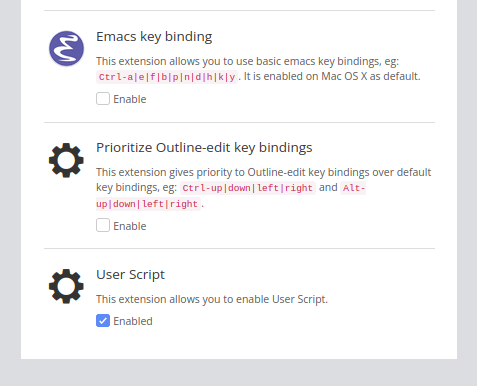 右上のUser Settings→Extensions→Prioritize Outline-edit key bindingsのところのチェックマークを外すと、Ctrl+左右キーをオフにできるみたいです。