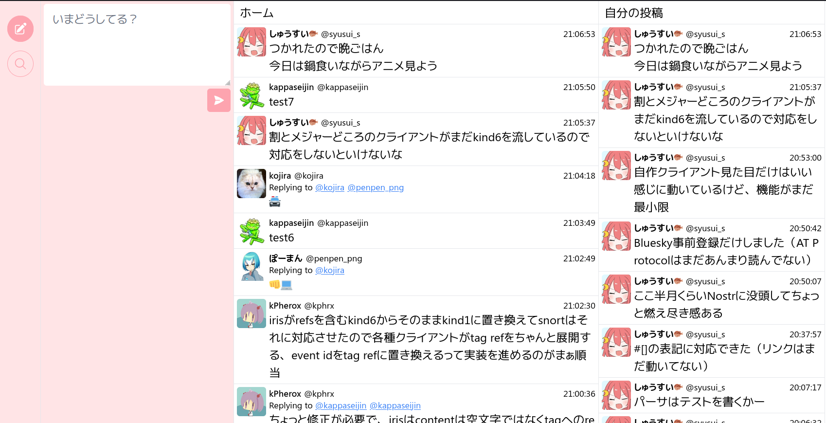 自作クライアントに#nostrstudyの投稿を流すタイムラインを追加した