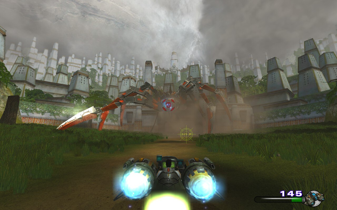 What is unique are the visuals. At a time when games, especially of the FPS variety, were “gritty”, “realistic”, and (shudder) brown, Serious Sam II eschewed all that and went with shocking and bright colour.