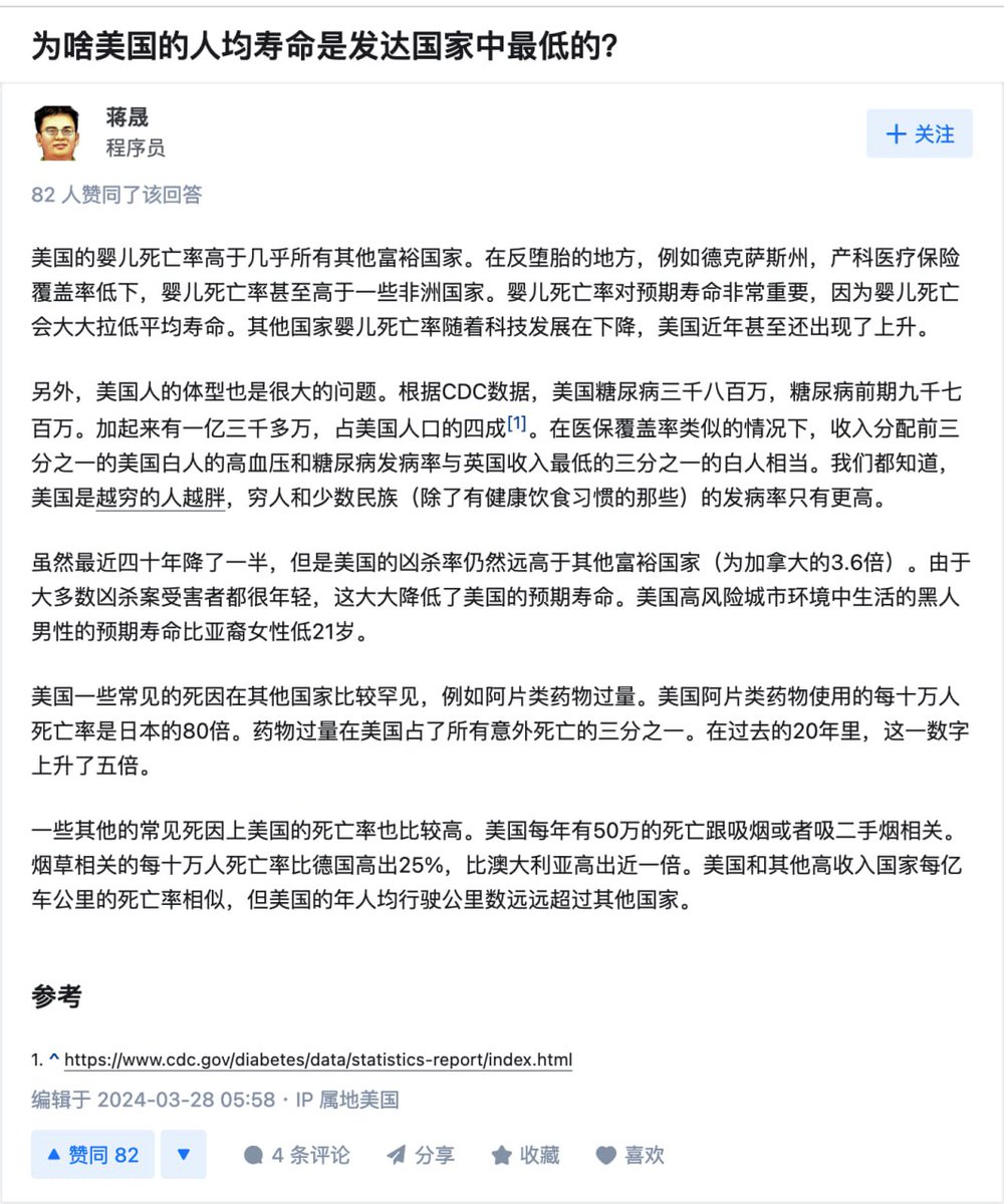 为啥美国的人均寿命是发达国家中最低的?