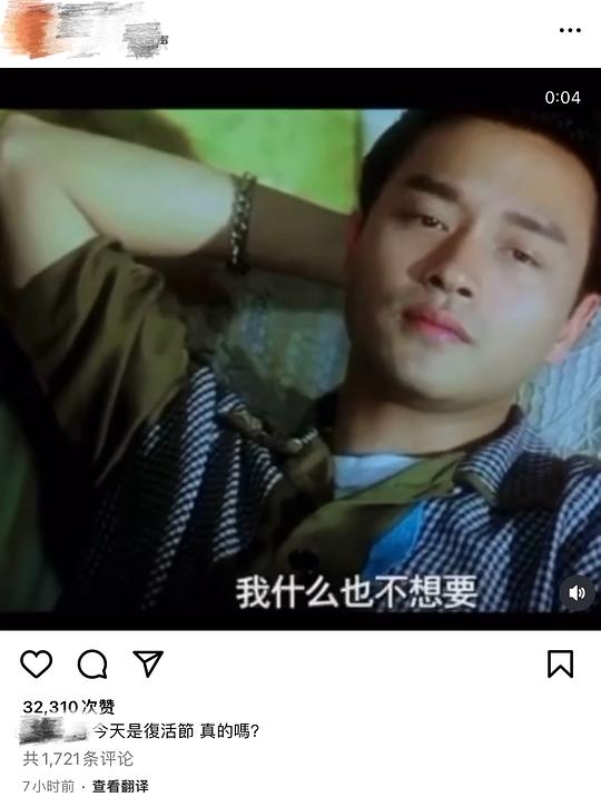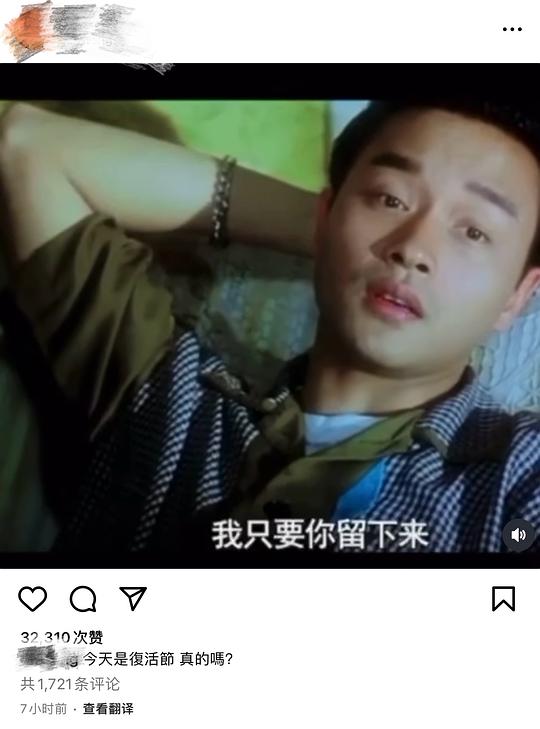 唐鹤德更新ig,“我什么都不想要,我只想要你留下来”,并配文“今天是复活节,真的吗”。
