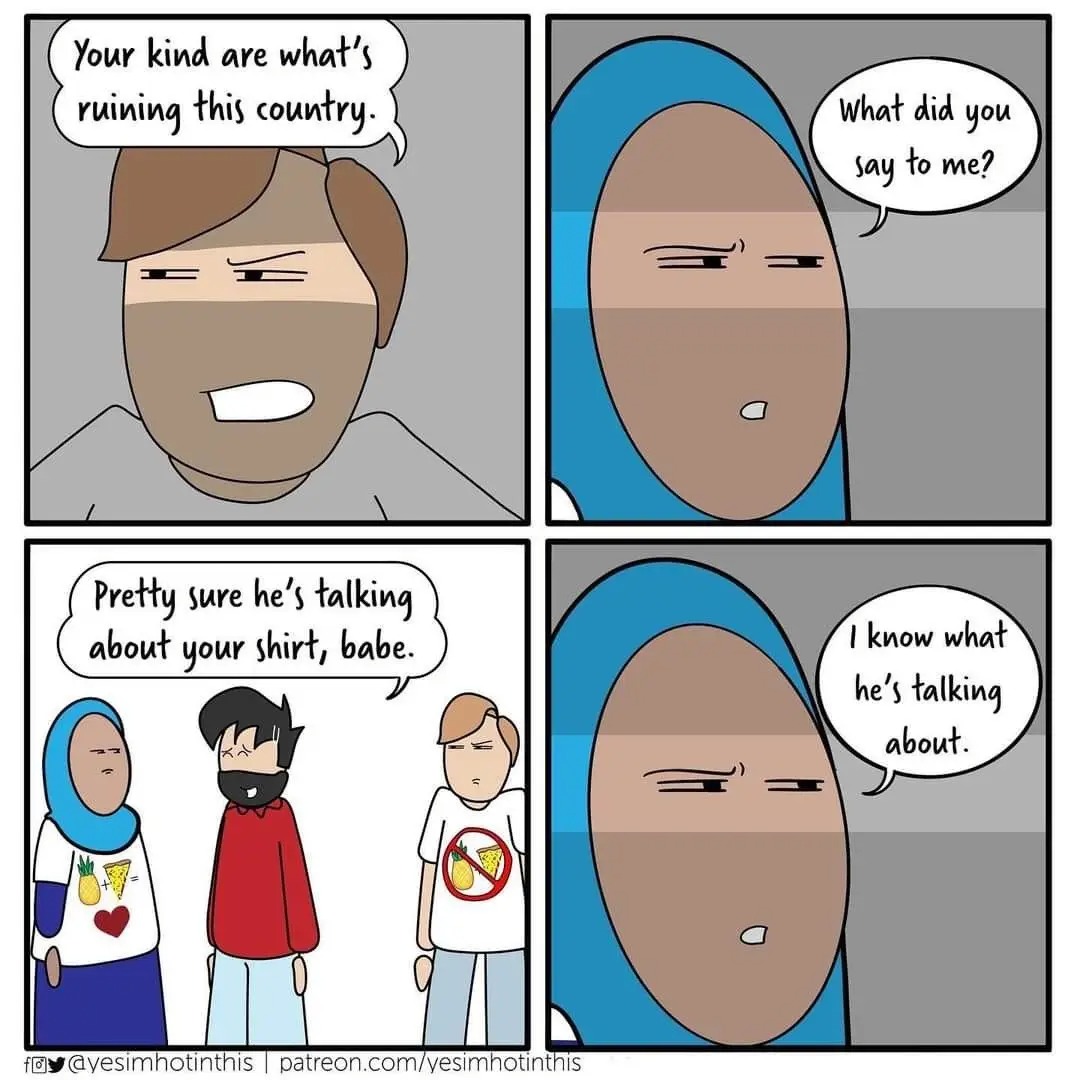 I am not a fan of the hijab or Islam in general and islamization, but I thought this was sweet. We all just want to feel OK and live our lives.