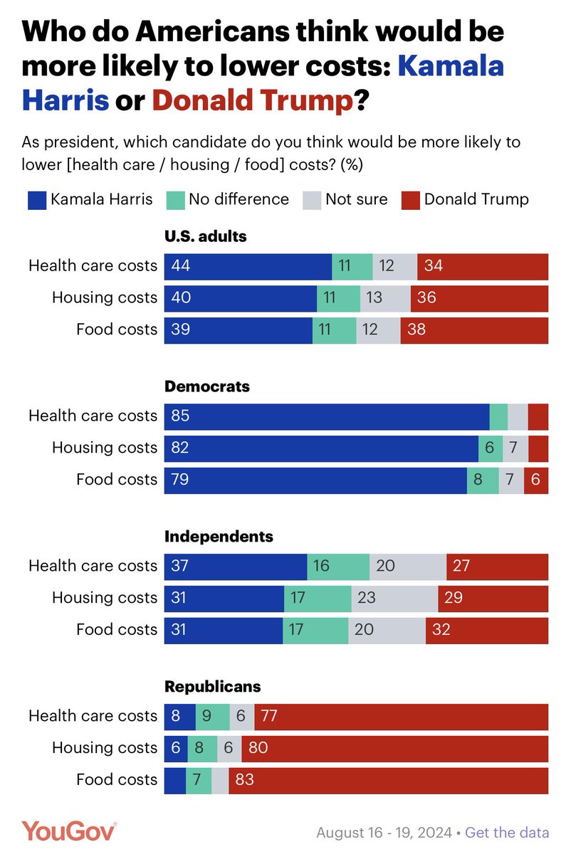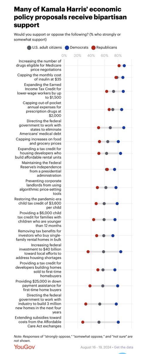 哈里斯新宣布一条经济方案,给新公司减免5万美元报税(目前是5千美元)。到现在为止哈里斯提出的经济方案每一条都得到大多数选民支持,支持率最高的是为老年医保争取降低更多药物价格(82%)、最低的是增加奥巴马医健补贴(52%),被马斯克和共和党歪曲为要搞物价控制的禁止哄抬物价也有65%支持率。川普有什么具体经济政策?开采石油采呀采?给所有进口商品征收10%关税?