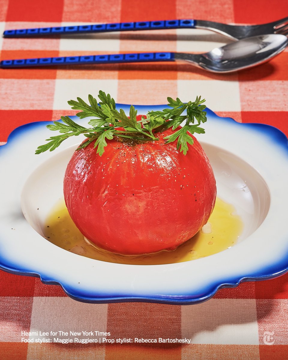 This dish is as beautiful as it is unusual: It’s simply a tomato gently roasted and basted with olive oil. https://nyti.ms/3JaYE1K #press