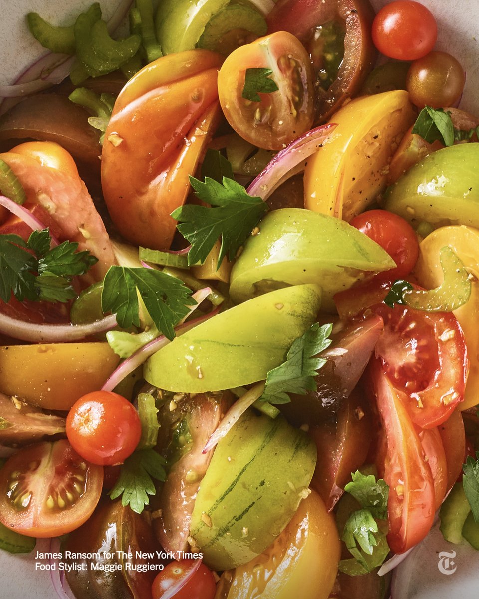 "Made it this morning and couldn't stop tasting it." Flavors of Bloody Mary are the inspiration for this simple summer tomato salad. https://nyti.ms/43fQY5C #press