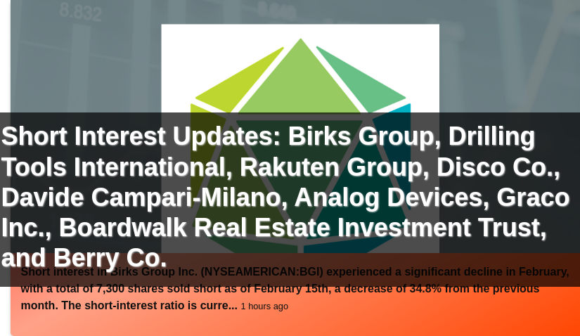 π° Short Interest Updates: Birks Group, Drilling Tools International, Rakuten Group, Disco Co., Davide Campari-Milano, Analog Devices, Graco Inc., and Boardwalk Real Estate Investment Trust https://here.news/story/8b5828c6?ver=0.2 #8b5828c6
