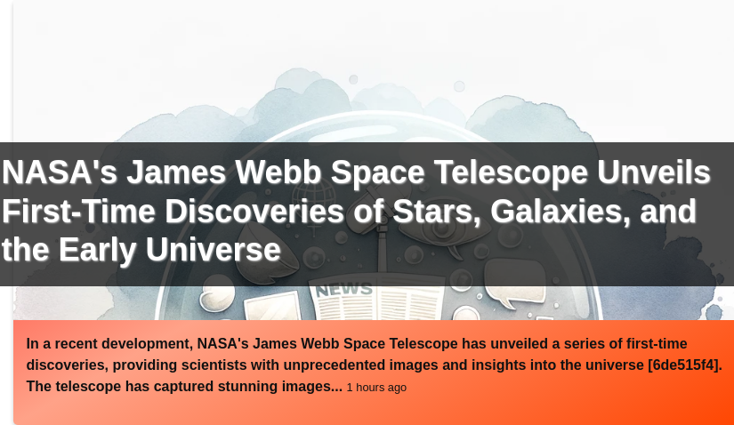 📰 NASA's James Webb Space Telescope Unveils First-Time Discoveries of Stars, Galaxies, and the Early Universe https://here.news/story/9822ee6e?ver=0.23 #9822ee6e