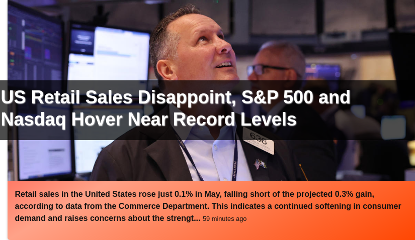 📰 US Retail Sales Disappoint, S&P 500 and Nasdaq Hover Near Record Levels https://here.news/story/fed009b0?ver=0.6 #fed009b0