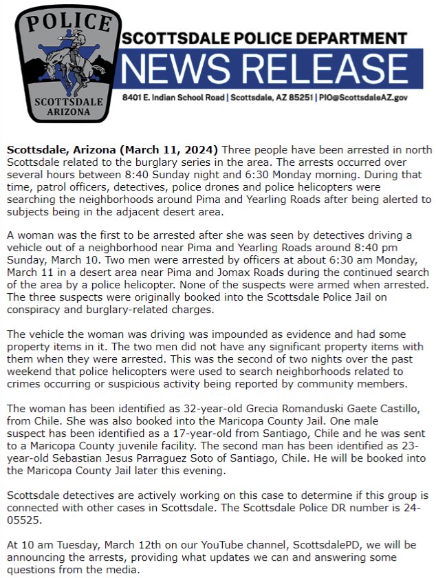 These three “tourists” traveled 5,341 miles from Chile to Scottsdale to burglarize our homes.