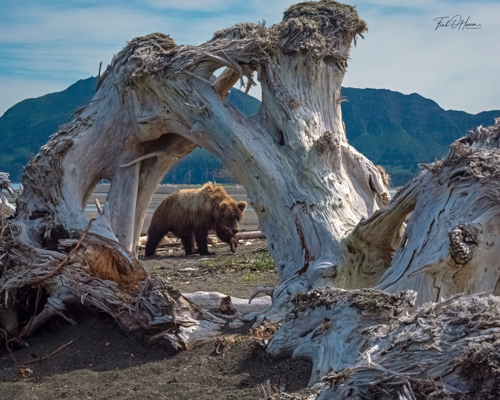 Nature makes its own picture frames. Beautiful Kodiak brown bear.