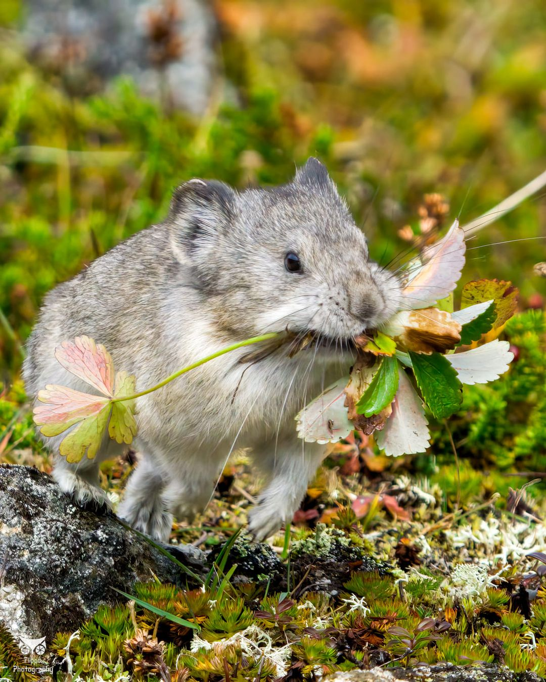 Hatcher!! On the move gathering as many greens and flowers as possible to store under boulders on the mountain in Hatcher Pass. Photographer Phillip Flippo says he will do this 4-6 times before taking a break.