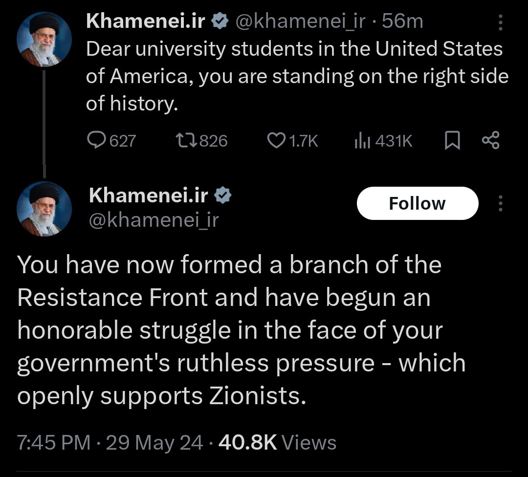 Chief Islamo-Nazi endorses the Hitler youth on our college campuses and in our streets. Why wouldn't he? He's helping to fund them, and Biden-Blinken are funding him. https://t.co/xyunAKEQgb