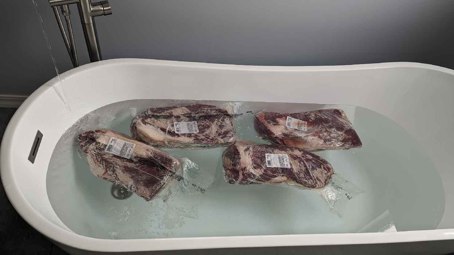 I traveled from MO to CO. The brisket was supposed to be here, but wasn't. We had to get brisket from the local store. 6 were frozen. Hopefully I can get them thawed by Friday evening.