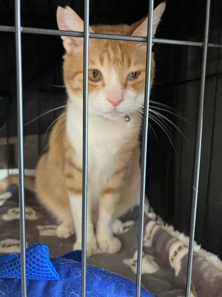 おもちさん、目薬の攻防でへそ曲げてしまった…。