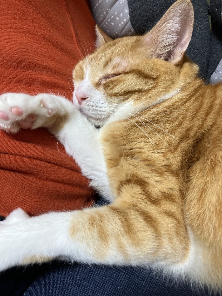 モンハンする足元で寝てるおもちさん。