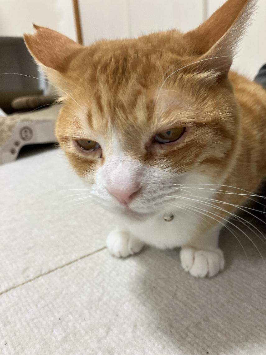 普段、抱っこして膝に乗せると早々に離れるのにずっと居座ったおもちさん。