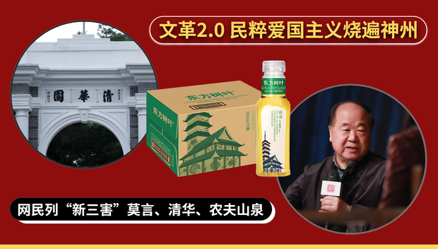 #农夫山泉、作家 #莫言 和 #清华大学 被“爱国网民”贴上“#新三害”的标签。在中国网络严管长城下,为什么“#爱国”的言论可以持续发酵,大行其道?https://t.co/dvxCEaJUxW https://t.co/50AjYnhoOq